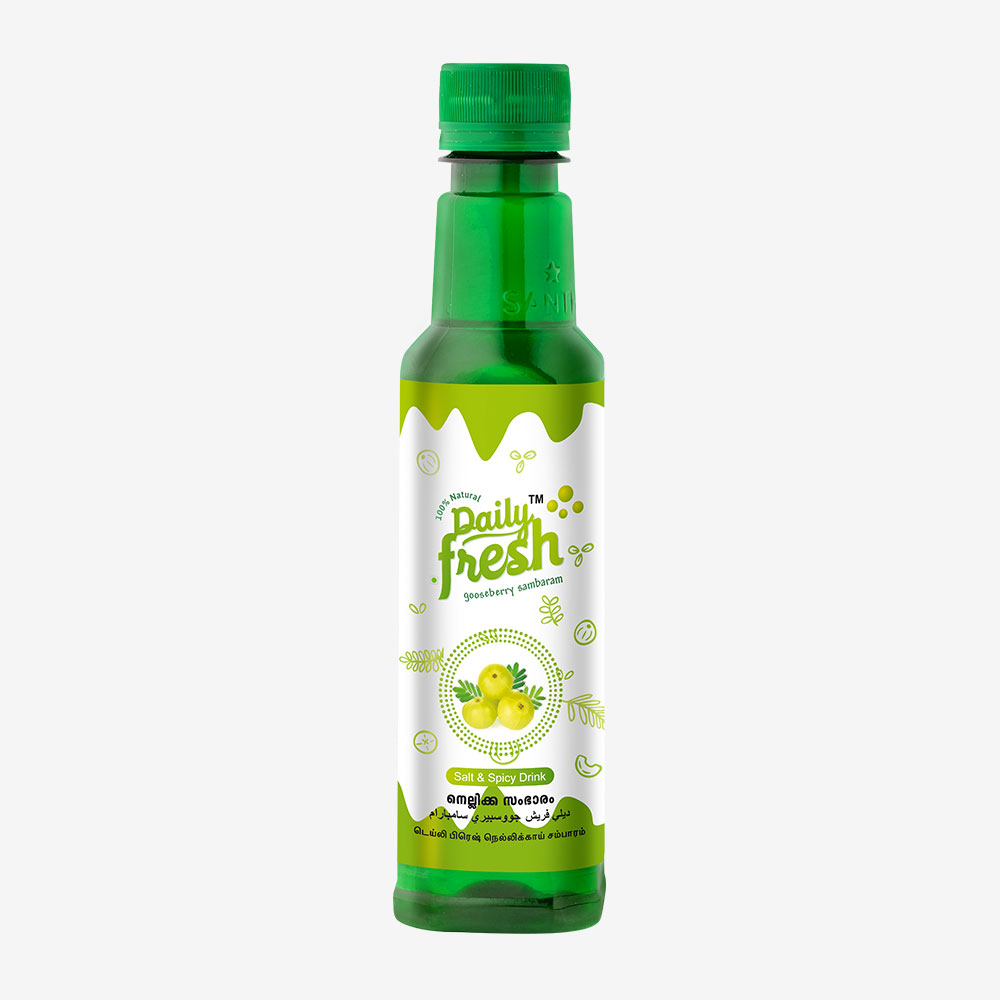 A refreshing traditional drink with goodness of gooseberries. Packed with Vitamin C, Vitamin E, and antioxidants, this wholesome drink helps to boost immunity, improve digestion, and promote overall well-being. Gooseberries provide with youthful glow and strengthen hair from the roots. Gooseberry Sambharam is made from pure, natural ingredients and is free from chemicals. Perfect for cooling body, aiding gut health, and revitalizing you with every sip.